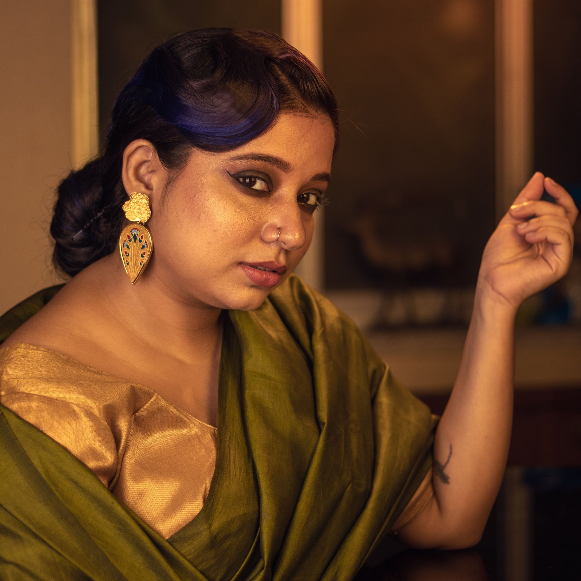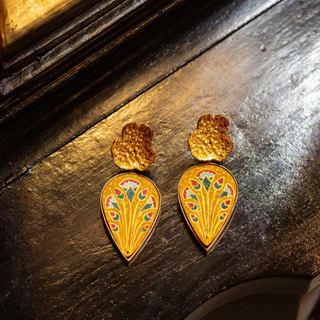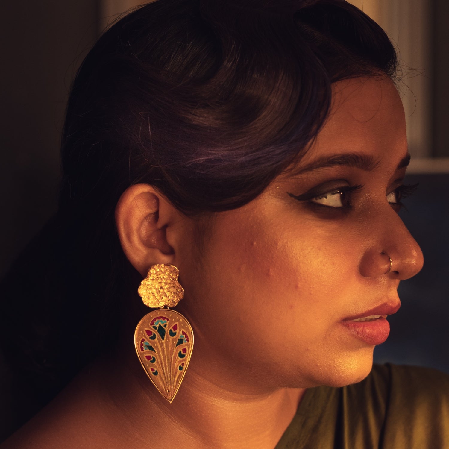 A one of a kind floral motif in golden hue resembling prosperity that the goddess bestow upon us this piece is a contemporary design to enhance your unique sense of style.