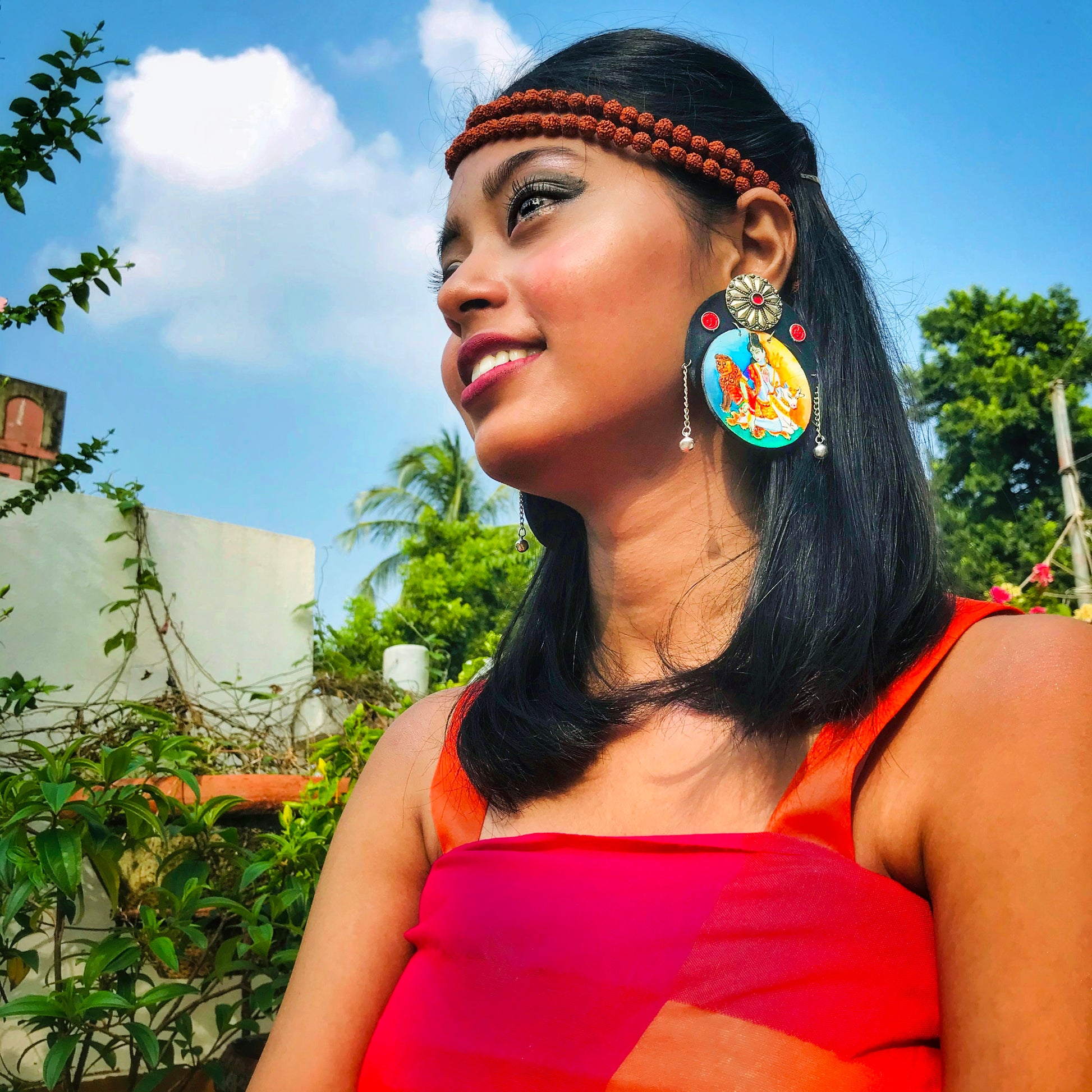 Goes well with bengali tant, handlooms in shade of red, black, dark yellow.