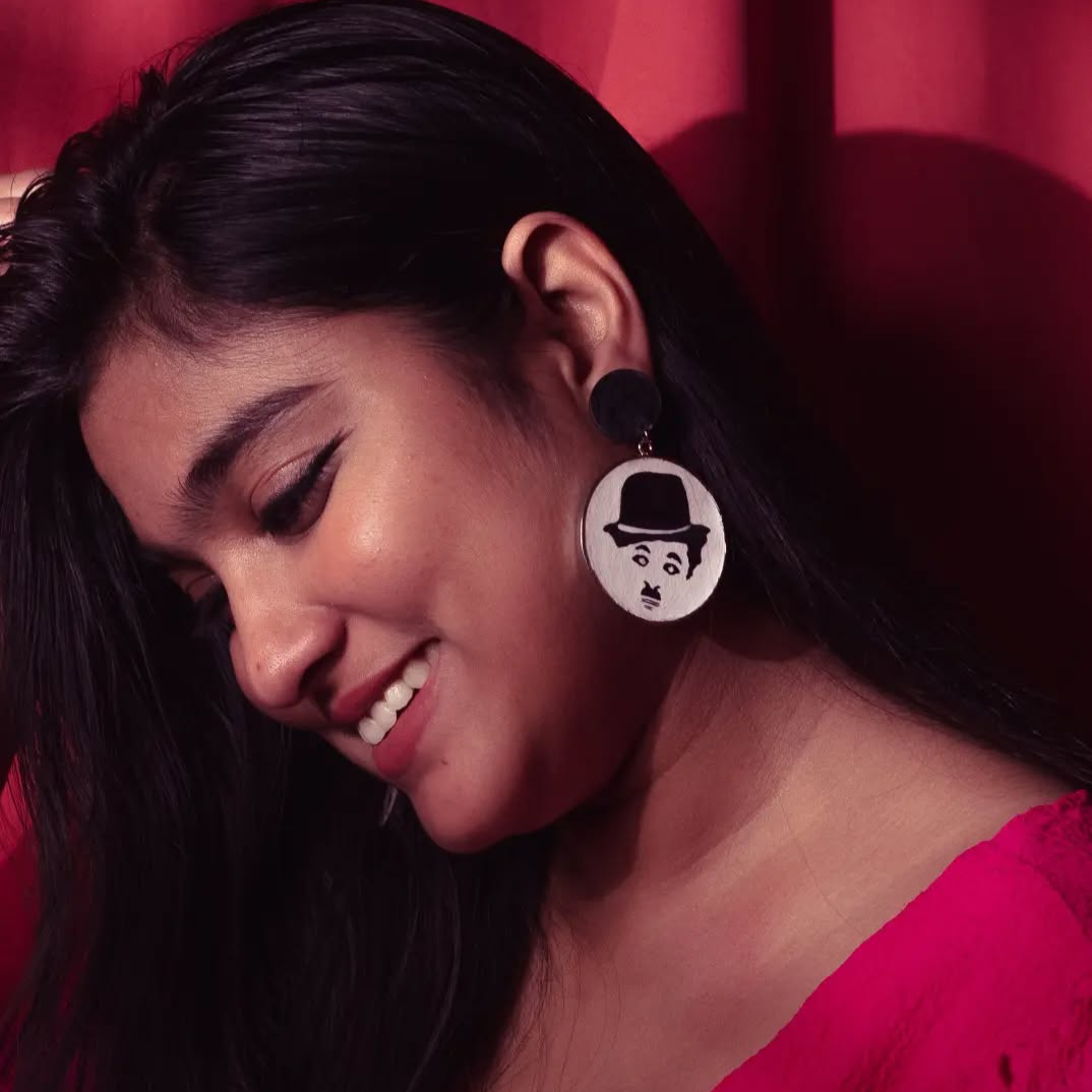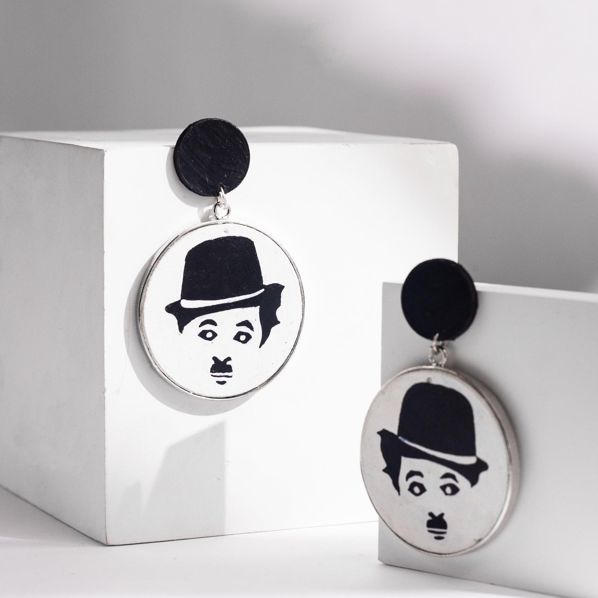 Hello Charlie is our tribute to Sir Charles Spencer Chaplin. His face painted on white backgroud with a black stud on top is the major attraction of the earrings, Simple yet classy. If you are a Charlie fan don not forget to own it.