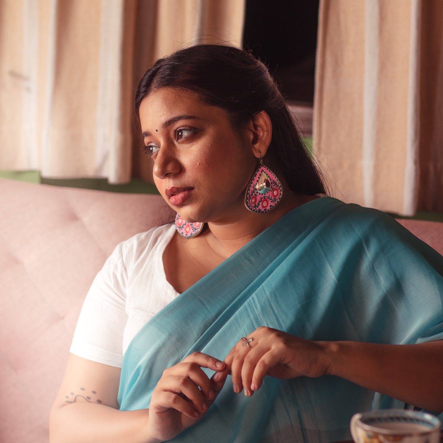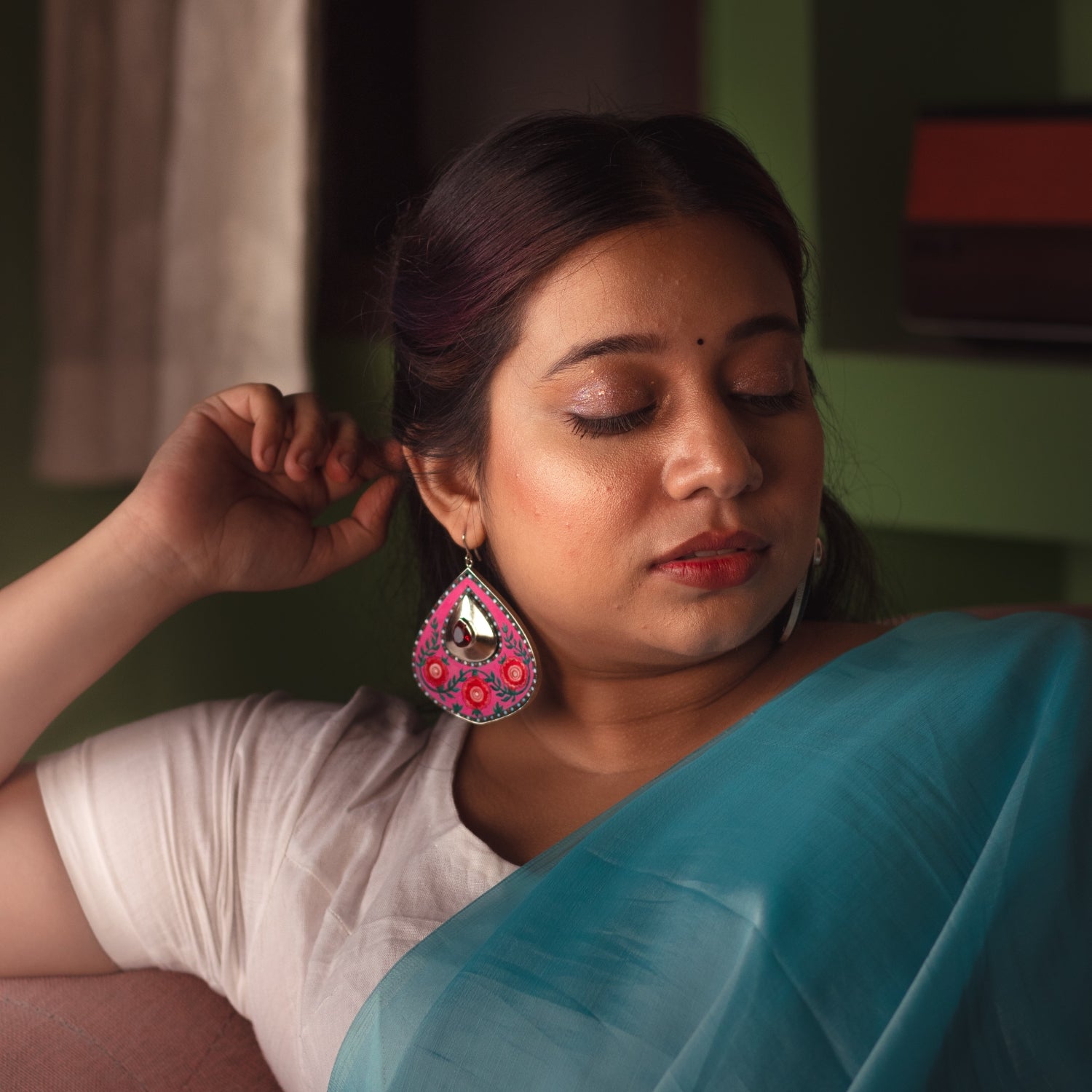 When we bring in nature to our creations we often go back to Madhubani for inspiration. This artform includes various elements of nature and each holds a special meaning. The essence of Durga Pujo also lies in the nature. We created Drina to celebrate the sensory time, when changes in nature indicates that Pujo is about to come.