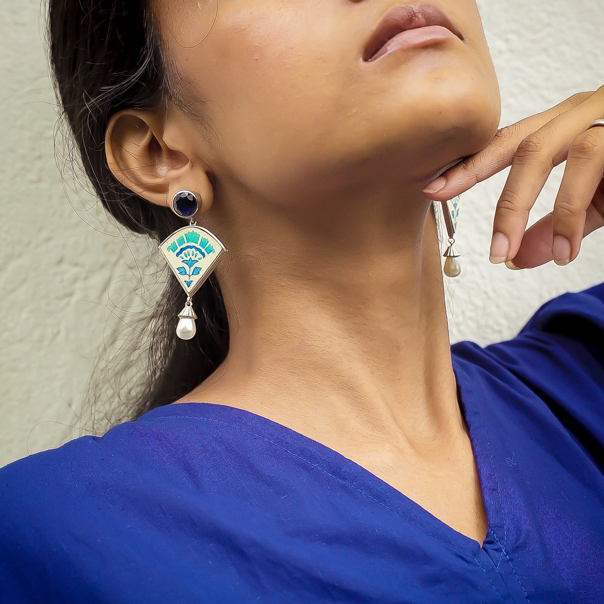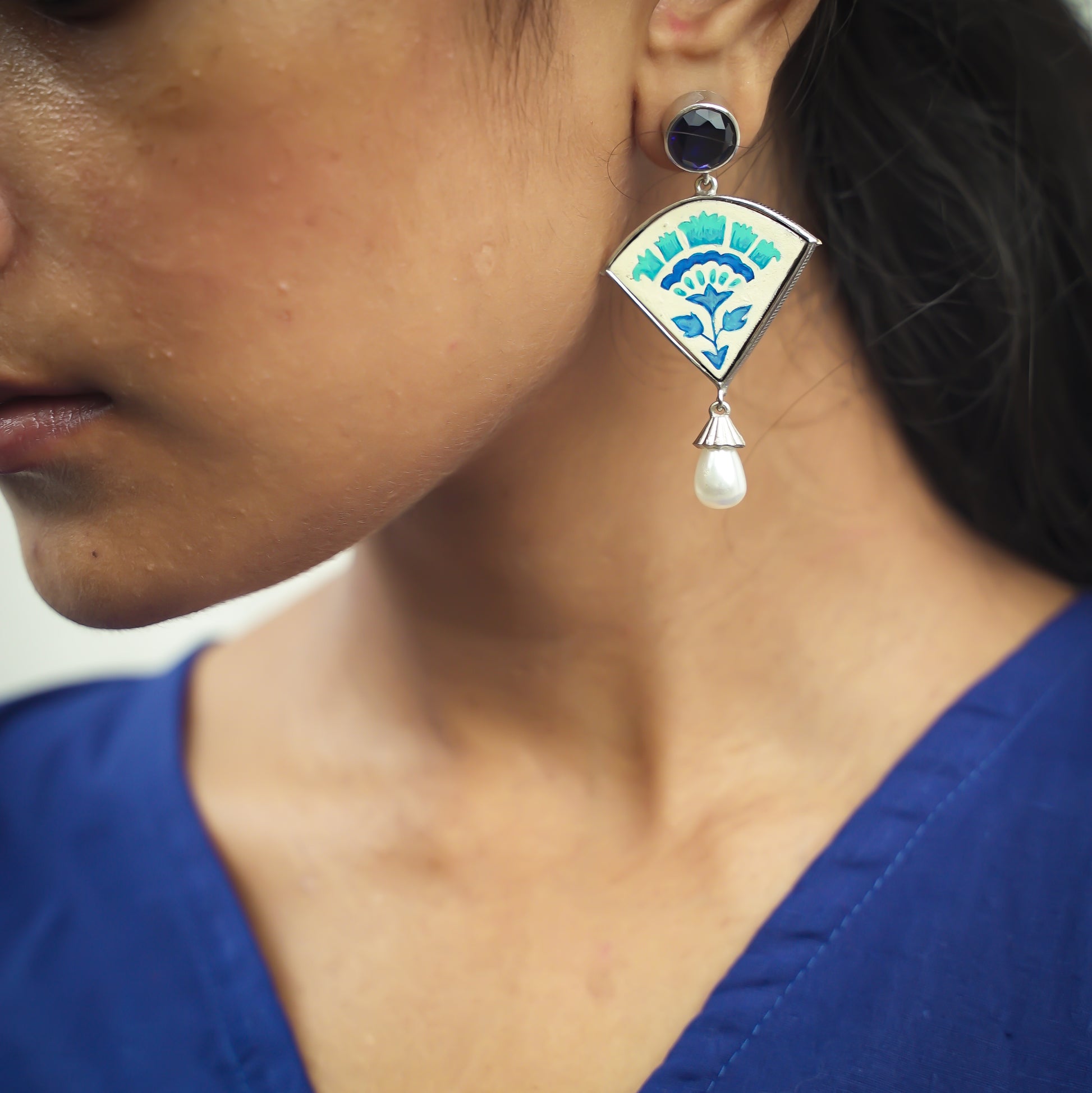 "Sapphire" Hand-painted Earring