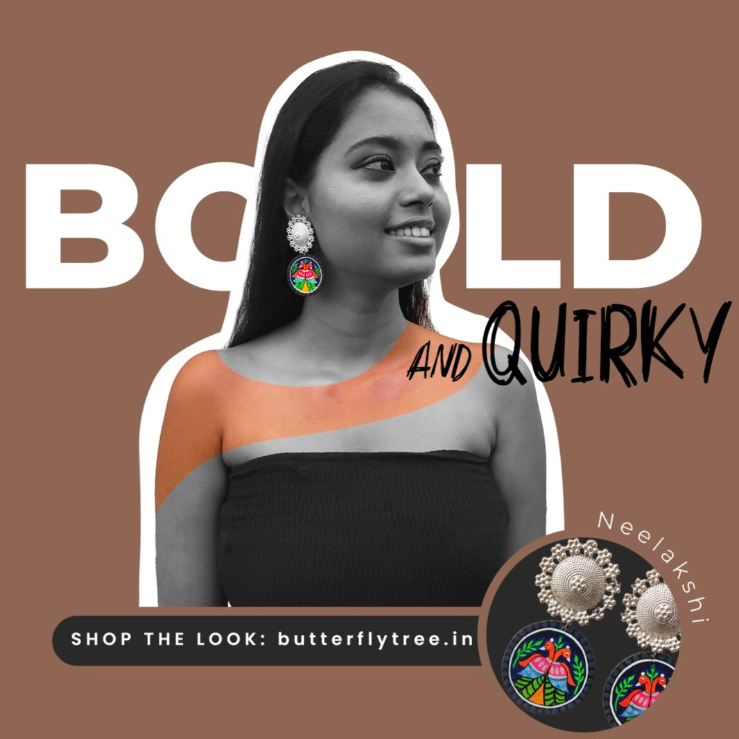 Neelakshi is inspired by Madhubani painting. This is a very pretty earring with peacock motif painted on it with a gorgeous silver stud at the top.