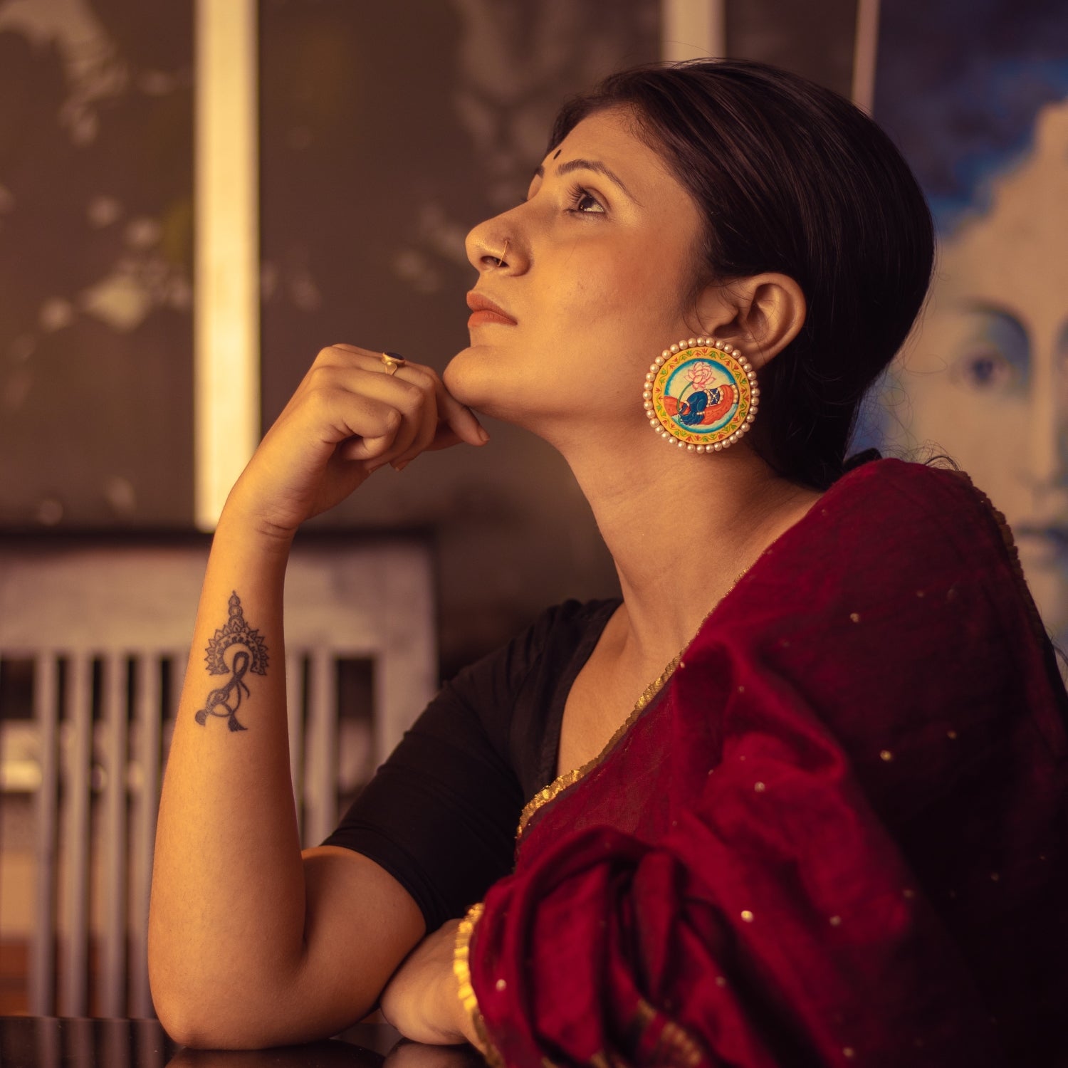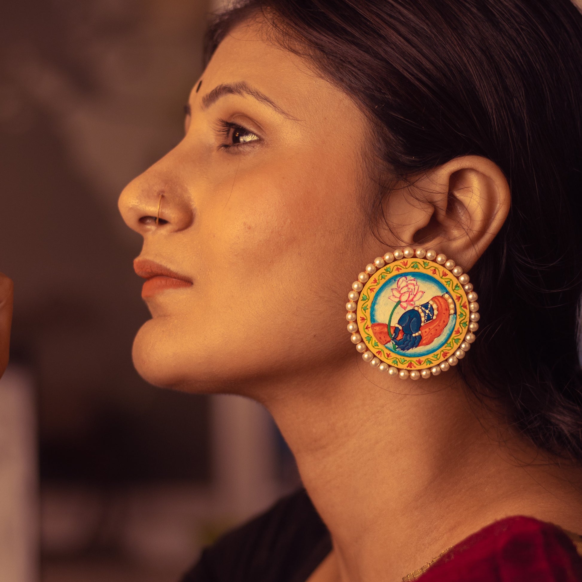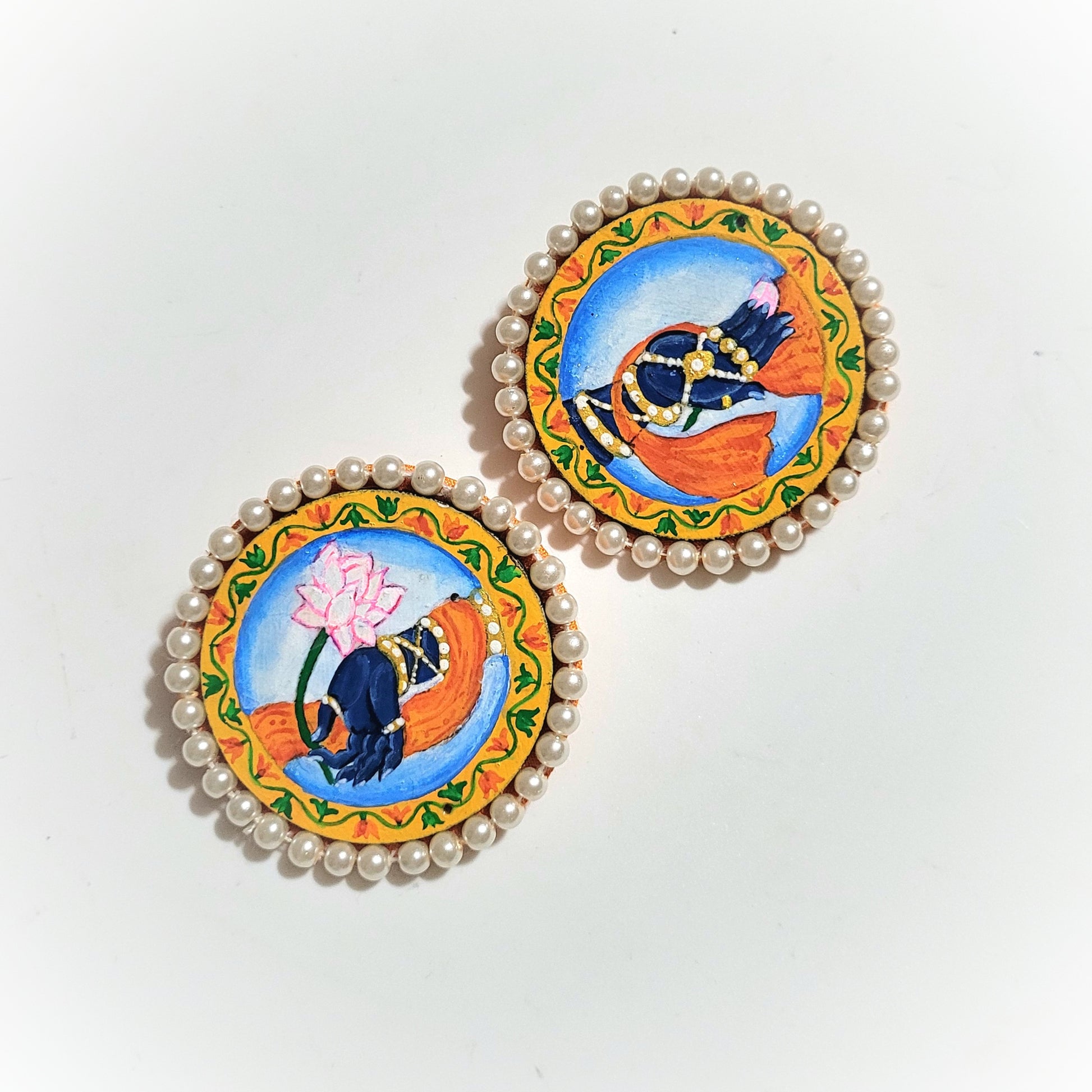 "Srinathji" Hand-painted Earring | Pichwai Art