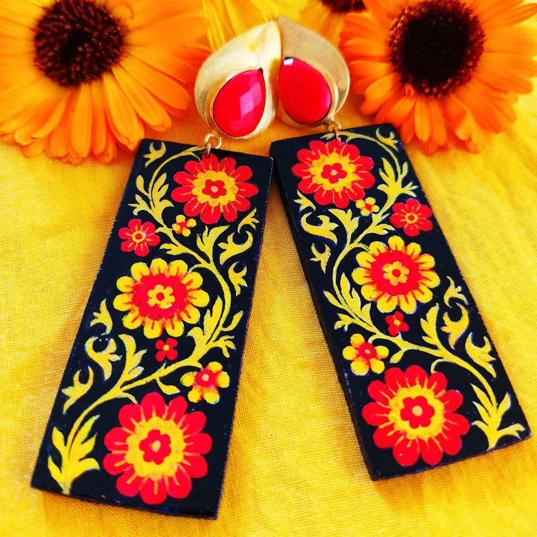Wedding bell has been inspired from the very two gorgeous colours of wedding " Red and golden", also the most important thing we need for the day is flower. The elaborate beautiful golden flower motif with a tint of red on it and the golden tear drop stud with red stone have together amplified the beauty.